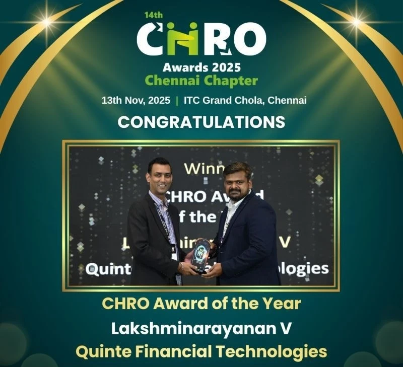 This recognition highlights his strategic leadership, commitment to building a people-first culture, and his continued efforts to elevate HR excellence within Quinte Financial Technologies (Quinte). Lakshminarayanan has been instrumental in driving impactful initiatives that strengthen employee experience, organizational capability, and long-term talent development.